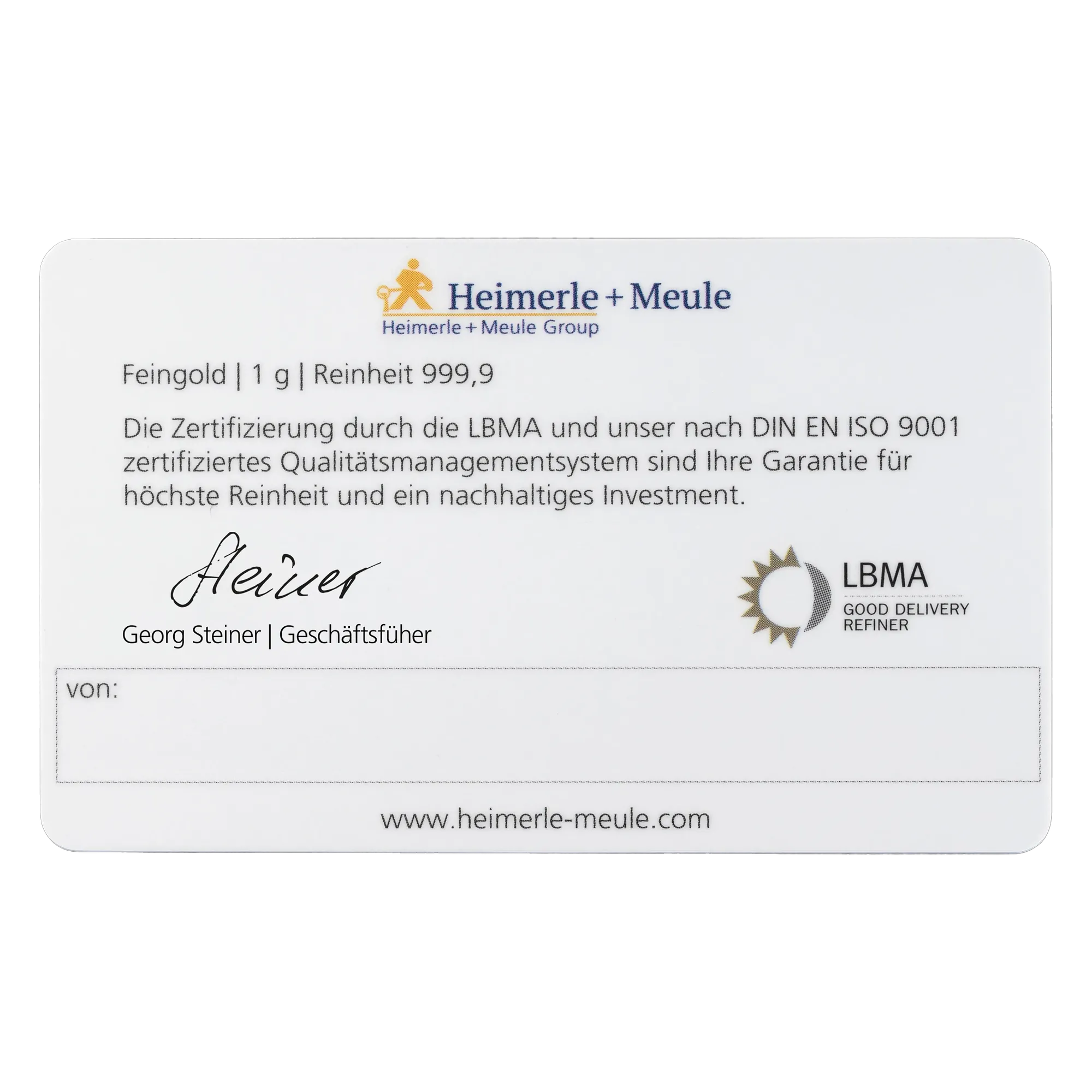 Der FineCard Happy New Year Goldbarren wiegt 1 x 1,0 g und ist in einer ansprechenden, festlichen Verpackung erhältlich. Hergestellt von Heimerle & Meule, einem renommierten Anbieter von Edelmetallen, bietet dieser Goldbarren nicht nur einen hohen Wert, sondern auch eine wunderbare Geschenkidee zum Jahreswechsel. Jeder Barren ist geprägt und garantiert höchste Qualität und Reinheit.